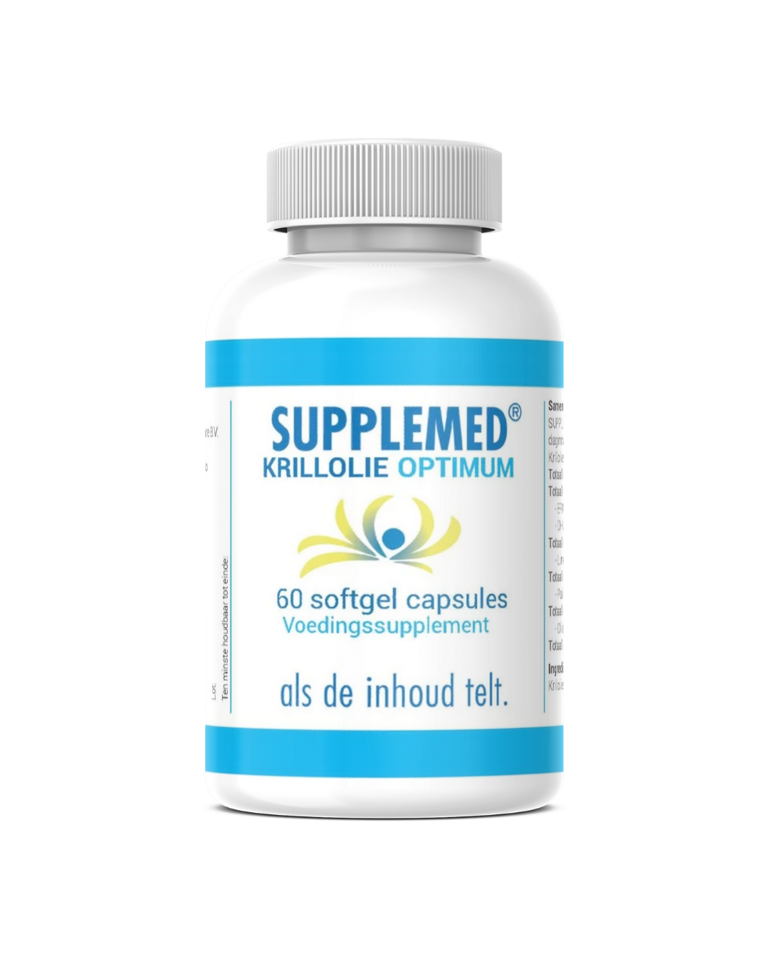 Supplemed Krillolie Optimum is een 100% natuurlijke olie gewonnen uit antarctische krill Euphasia superba. Krillolie is rijk aan omega-3 vetzuren, gebonden als fosfolipiden en daardoor stabiel en direct opneembaar, met superieure biologische beschikbaarheid en rijk aan de natuurlijke stof astaxanthine.